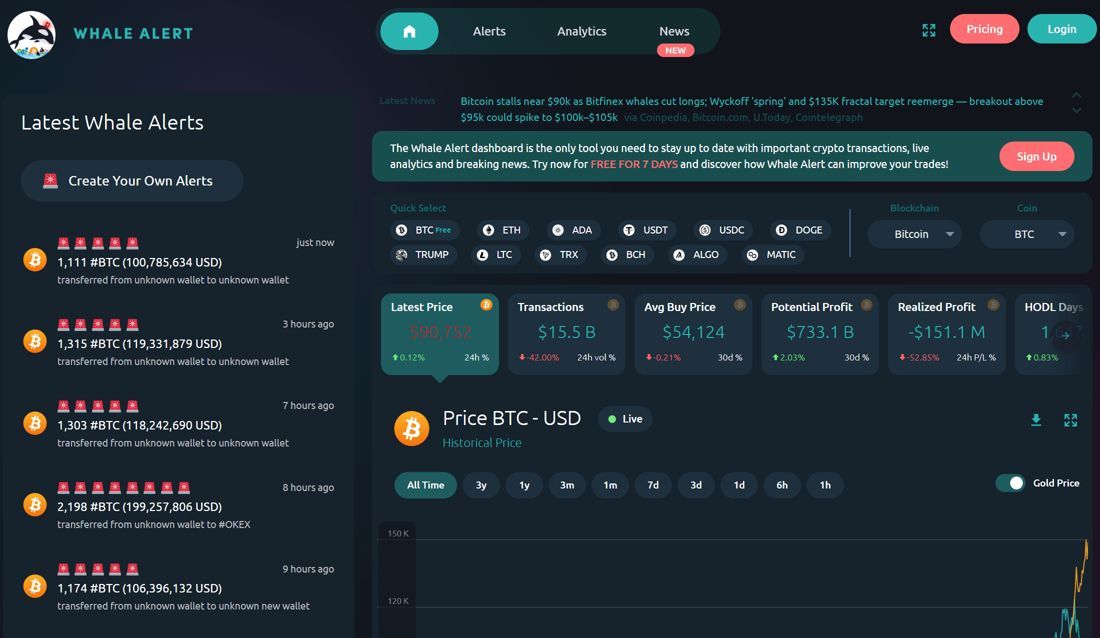 • Live whale trades on DEX platforms