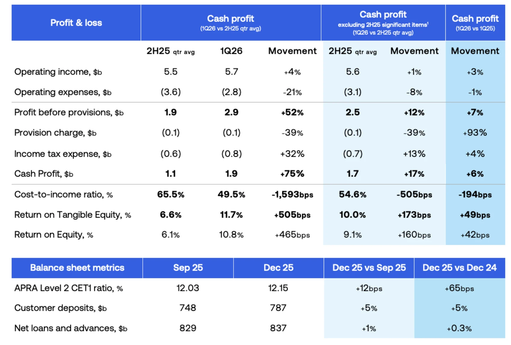 The cash profit is up by 75% from the 2025 second-half quarterly average. Excluding the impact of significant items, the increase is 17%.