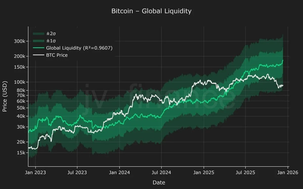 Global liquidity model places Bitcoin below projected fair value