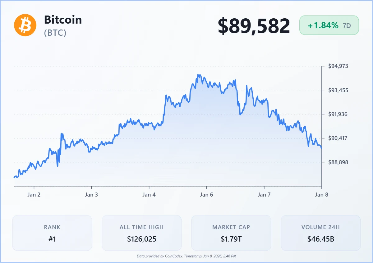 Bitcoin trades around $89,500 as of writing, down 2.36% over 24 hours and up 2.20% in the last 7 days. The crypto king remains about 28% below its October 2025 all-time high near $126,000. Against this backdrop, industry executives and investors have released some of the boldest Bitcoin price predictions yet for 2026.
