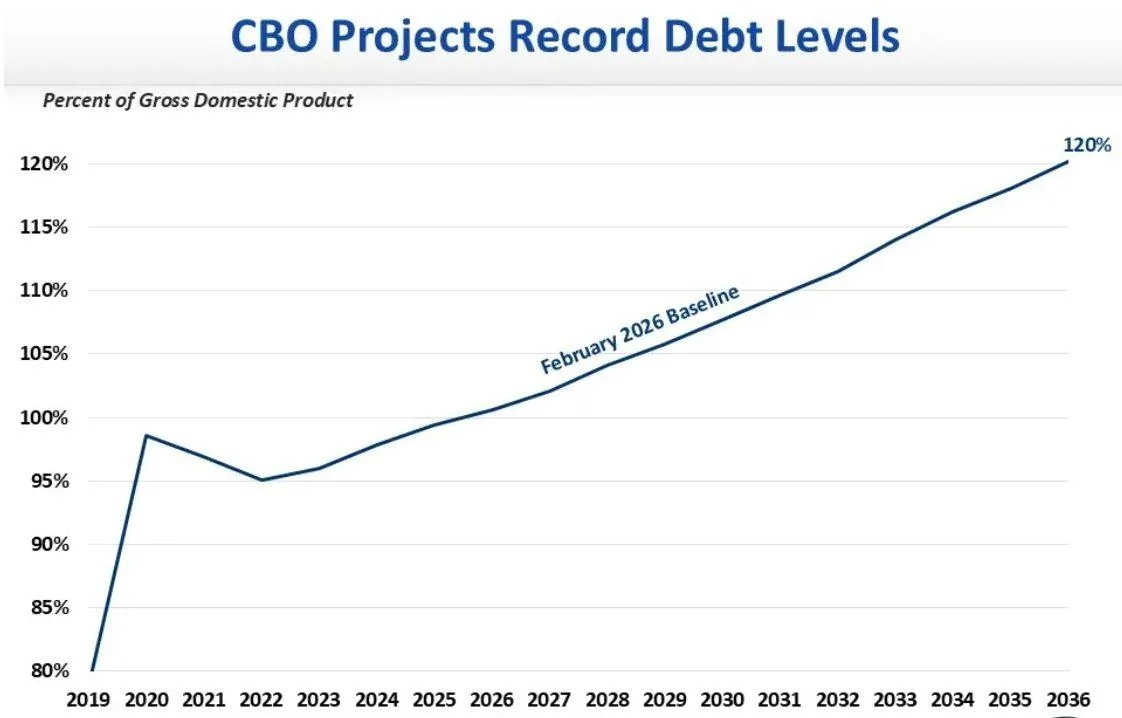 The latest Congressional Budget Office projections estimate that US public debt could climb to $64 trillion by 2036. Debt is increasing by about $2.4 trillion per year from current levels. Interest payments are also rising and may soon exceed major categories of federal spending. Analysts warn that debt-to-GDP levels near 120 percent could strain fiscal flexibility during future downturns.