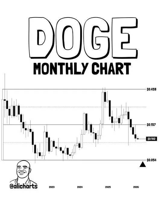 Dogecoin Monthly Chart. Source: Ali Charts on X
