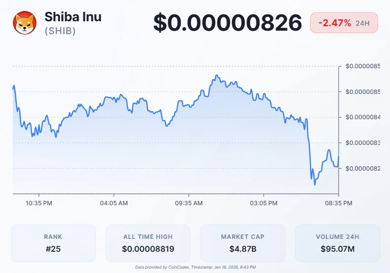 The timing and scale of this movement have captured attention across cryptocurrency markets. SHIB trades near $0.00000826, down 2.47% over the last 24 hours.