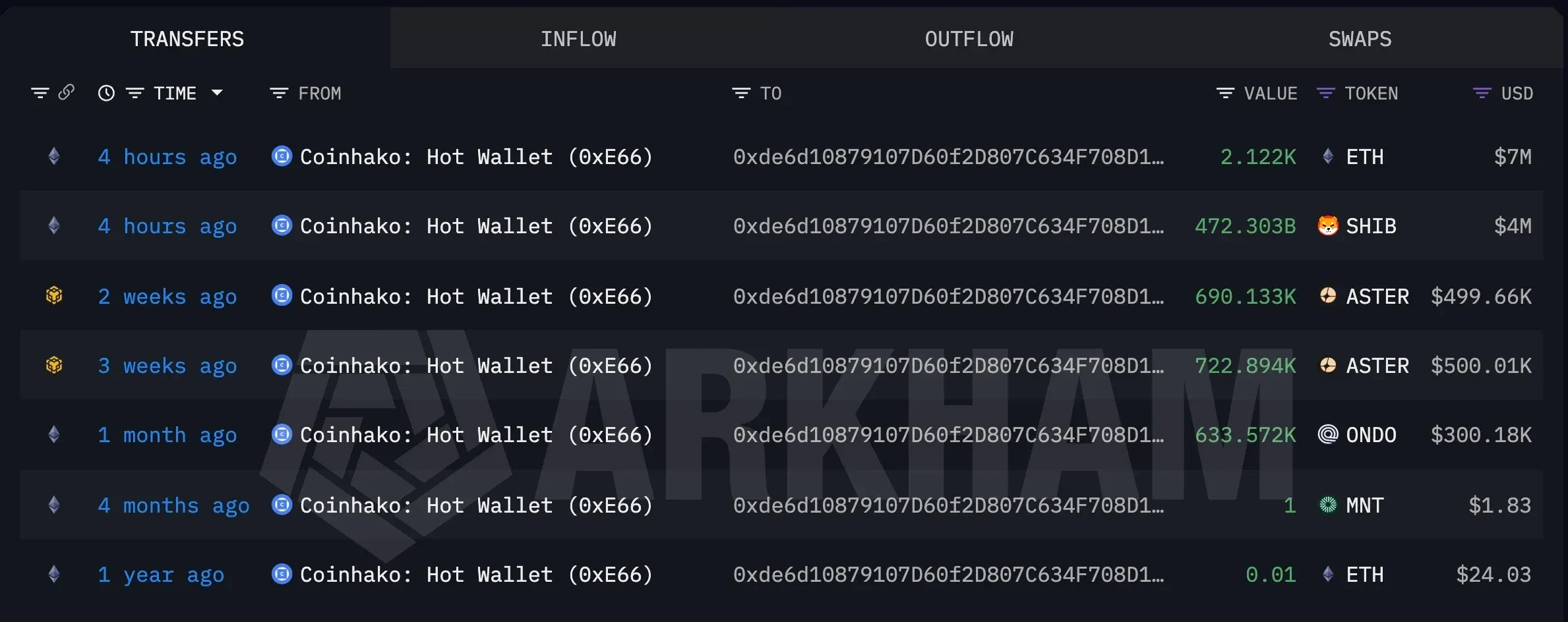 Blockchain intelligence platform Arkham tracked the transfer, which originated from Coinhako’s hot wallet. The recipient address, identified as “0xde6d…ceee8,” now controls digital assets worth over $12.2 million.