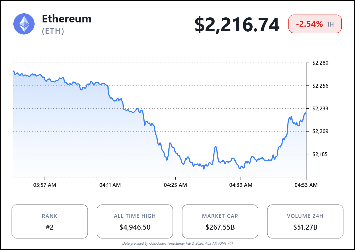 Ethereum price today fell sharply beneath the crucial $2,200 support level, rattling traders as leveraged positions were crushed. The broader crypto market’s weakness, including Bitcoin pressure, added to the sell‑off, highlighting the fragility of sentiment around the second‑largest digital asset.
