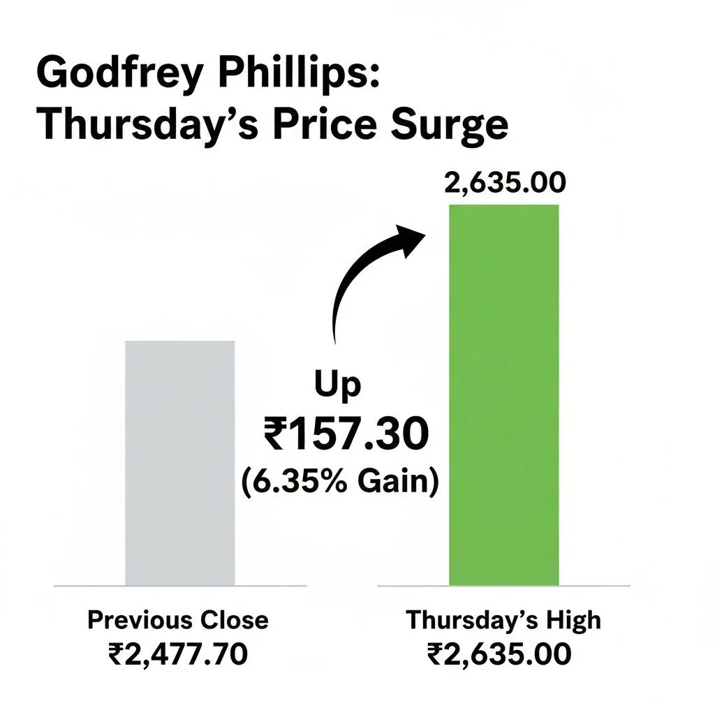 Godfrey Phillips hit a high of ₹2,635.00 on Thursday, up from the previous close of ₹2,477.70. At the time of writing, the stock is trading for ₹2,493.00, up by 0.62%.