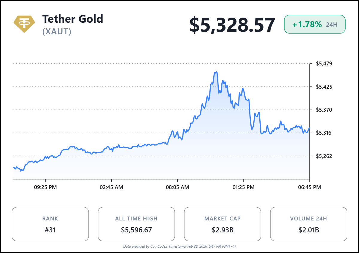 On‑chain gold markets lit up this week as tokenized gold products briefly surged above 5,400 USD, outpacing gains in the traditional bullion market amid escalating fears of a broader US-Iran war.