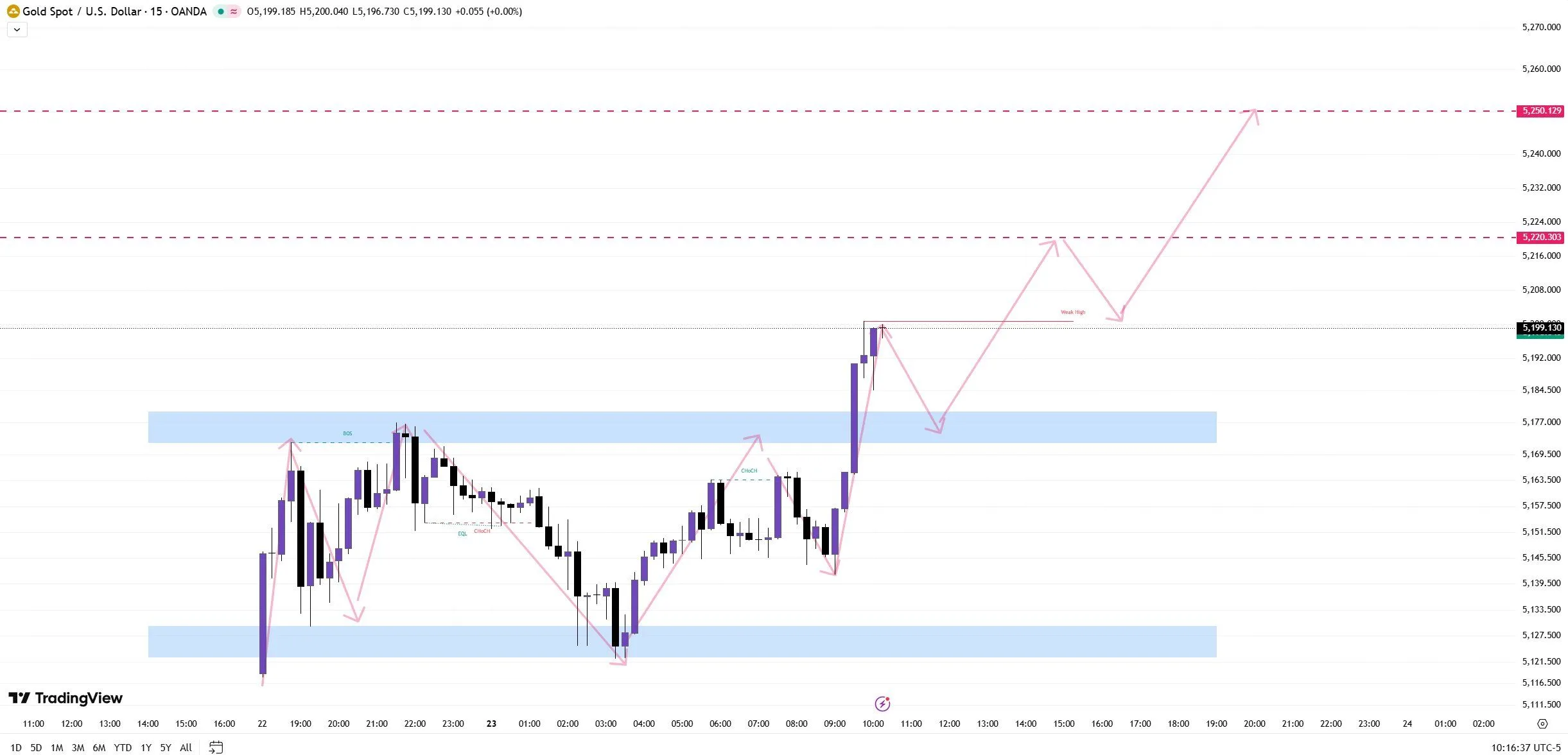On the technical side, gold has transitioned from consolidation to expansion on the 15-minute timeframe. A break above $5,180 confirmed a shift from the range to directional strength. The current structure suggests potential for higher highs if momentum persists.