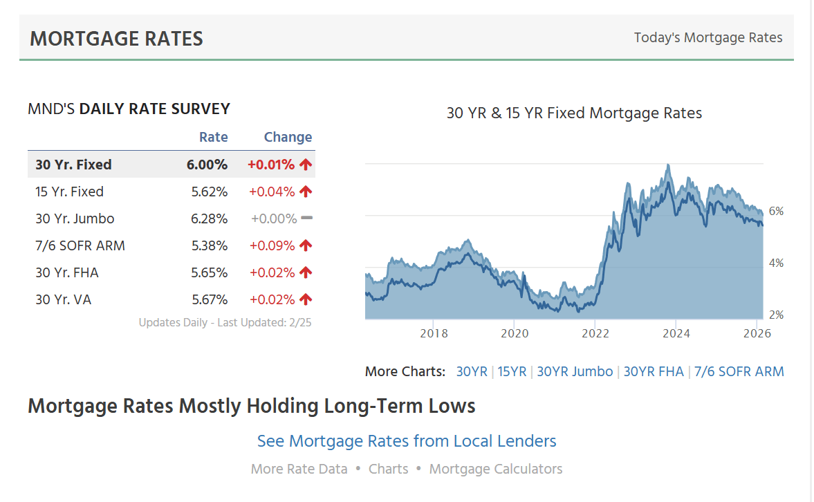 Mortgage rates in the US have fallen to their lowest level since 2022, yet homebuyers remain cautious. As of the week ended February 20, the average contract rate for a 30-year fixed mortgage dropped to 6% from 6.17% the previous week. That marks a second straight weekly decline and the lowest reading since early September 2022.
