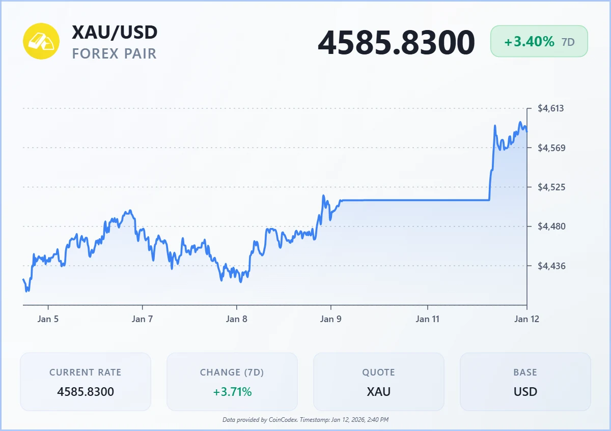 According to data from CoinCodex, gold burst above $4,600/oz earlier today, extending a months-long climb fueled by investors seeking safety amid escalating geopolitical risks and deteriorating confidence in the global economic outlook.