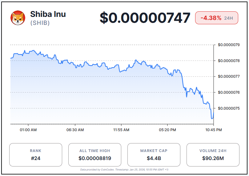The positive exchange dynamics emerge as cryptocurrency markets face continued pressure. Most digital assets have experienced significant declines in recent sessions. Shiba Inu fell 4.38% in the last 24 hours, to trade at around $0.00000747 at the time of writing.