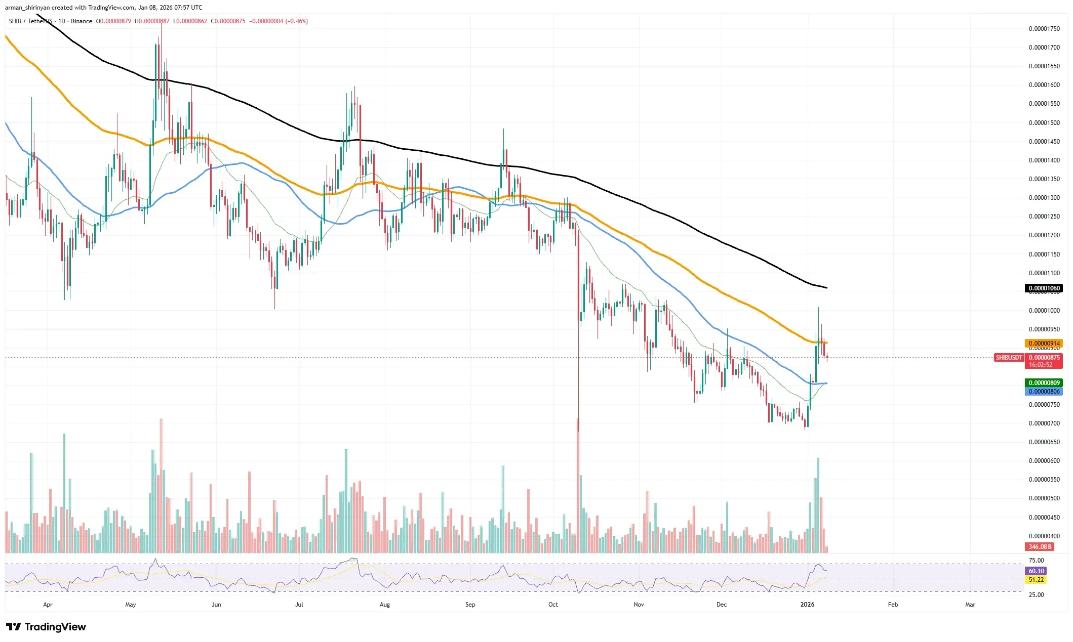 SHIB/USDT Chart, Source: TradingView