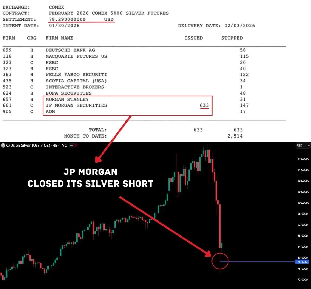As prices collapsed, attention shifted to U.S. futures data showing a sharp reduction in silver short positions held by major banks. Market observers pointed to COMEX reports indicating that U.S. banks had held roughly 17,838 silver futures shorts in early December, representing about 89.19 million ounces. Silver later declined toward levels where those positions appeared to unwind.