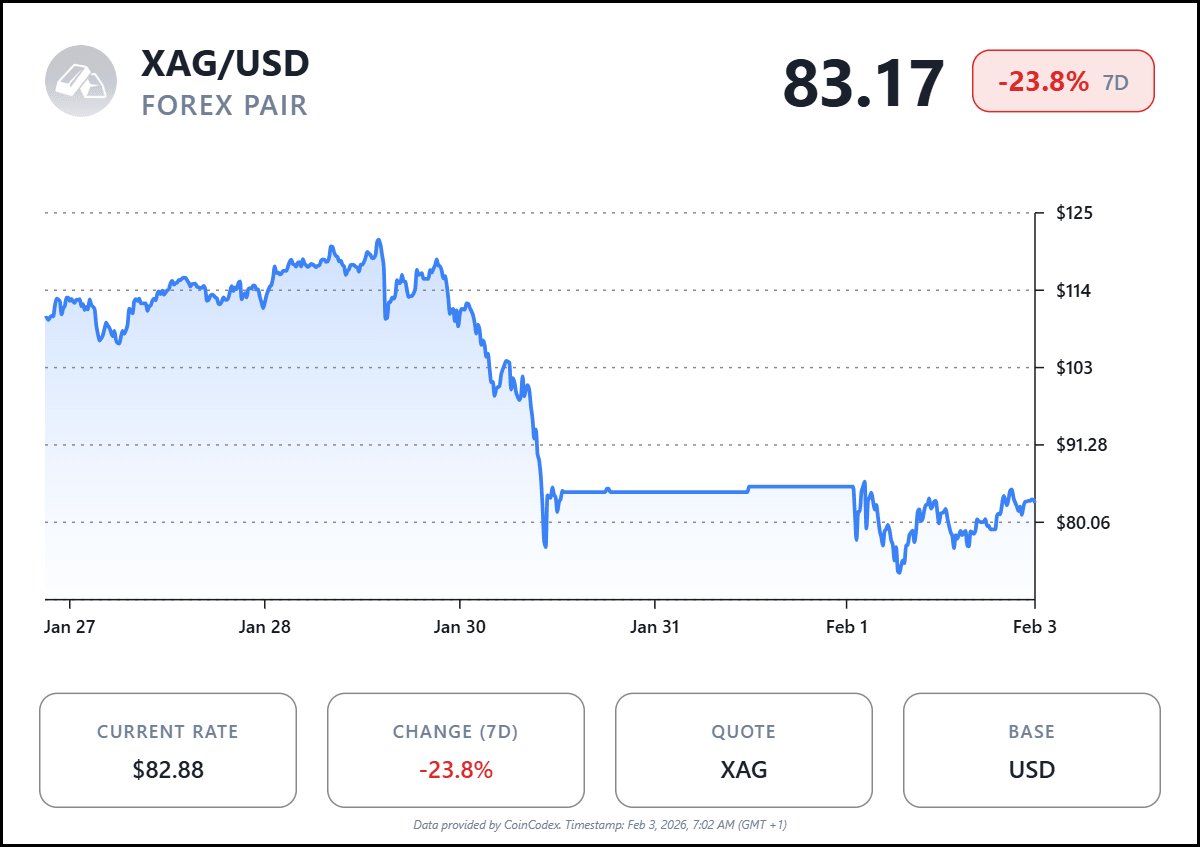 After surging very impressively this year, silver has since collapsed sharply. Prices are now hovering around $80 per ounce, down from peaks near $120 just days earlier. The violent move also reignited debate over whether silver’s boom was a speculative blow-off — and whether an even deeper drop lies ahead.