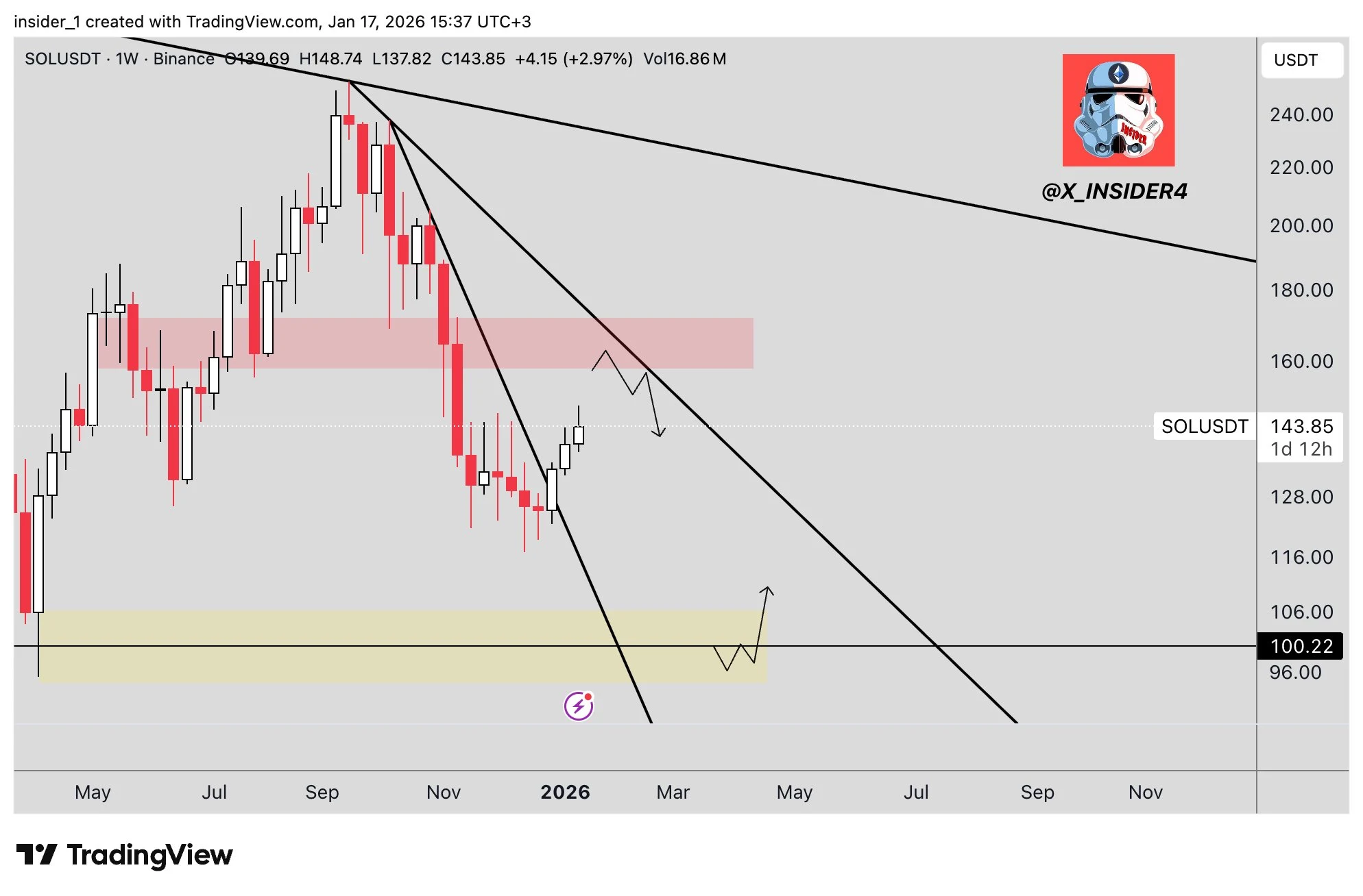 According to INSIDER, the chart setup still supports a bullish local outlook. The analyst said Solana broke a weekly downtrend line after a sharp selloff. Consequently, the next area of interest sits between $160 and $170. Traders may take profits there due to prior supply pressure.