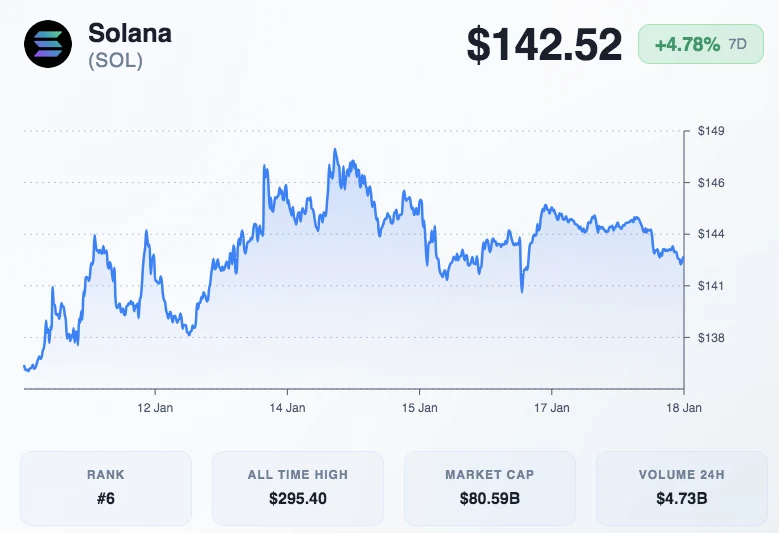 Solana’s price moved lower in the last 24 hours. SOL traded near $142.27 with a daily decline of 1.28%. However, weekly performance stayed positive with a 4.62% increase. The token held a market cap near $80.4 billion with 570 million in circulation.