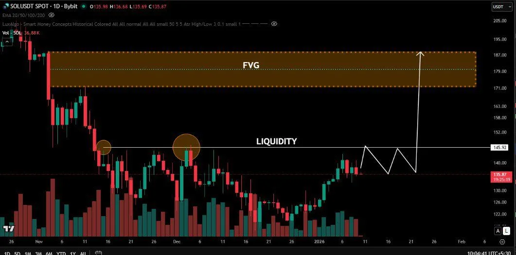 Eljaboom highlighted improving short-term structure after SOL reclaimed the $135–$138 demand zone. Additionally, higher lows continue forming, which limits downside risk. Analysts see $145 as a near-term pivot, with $187 emerging as a key resistance level ahead of February.
