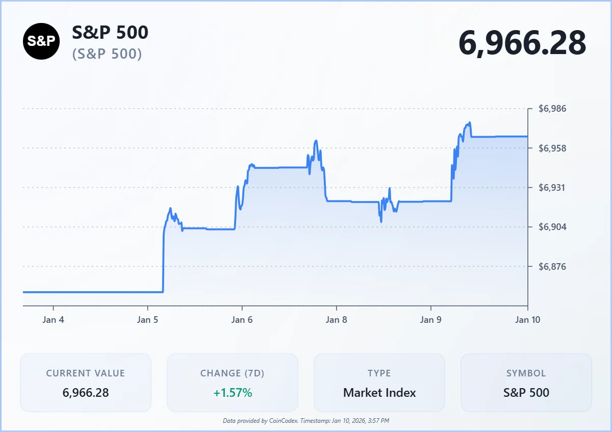 The S&P 500 traded at 6,966.28, up 44.82 points at close on 9th Jan, marking a fresh all-time high and extending a strong start to the year. Major U.S. stock indexes ended Friday’s session sharply higher, with the S&P 500 and Dow Jones Industrial Average securing record closes.