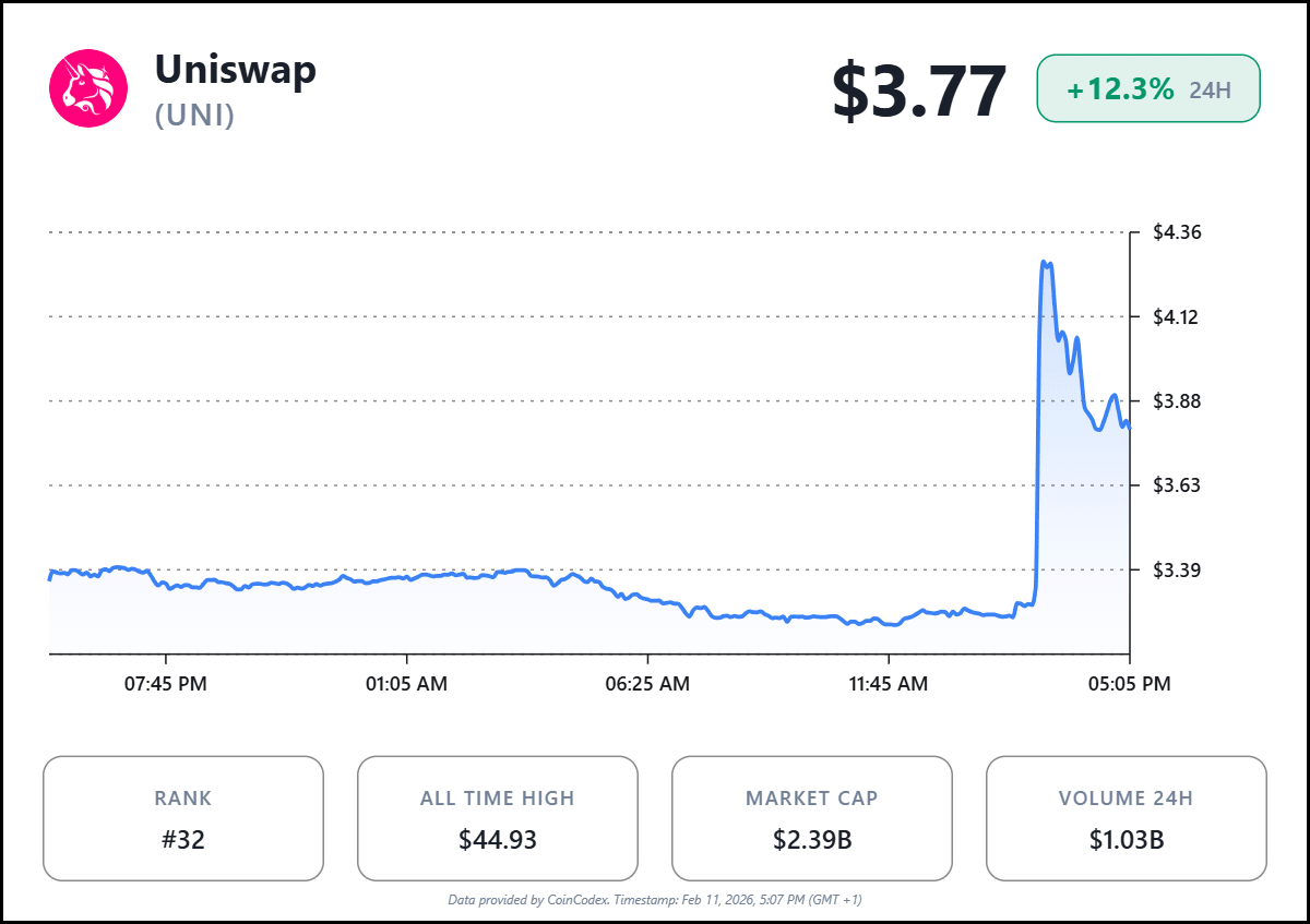 BlackRock’s UNI purchase, quantity undisclosed, grants governance rights, letting the giant vote on protocol upgrades impacting BUIDL liquidity. This echoes past UNI catalysts like the “UNIfication” fee switch proposal, which ignited a 63% rally to $10 in Nov 2025 via $842M token burns and buybacks. UNI’s market cap now tops $8.5B, with 956M tokens off exchanges (uptrend intact).
